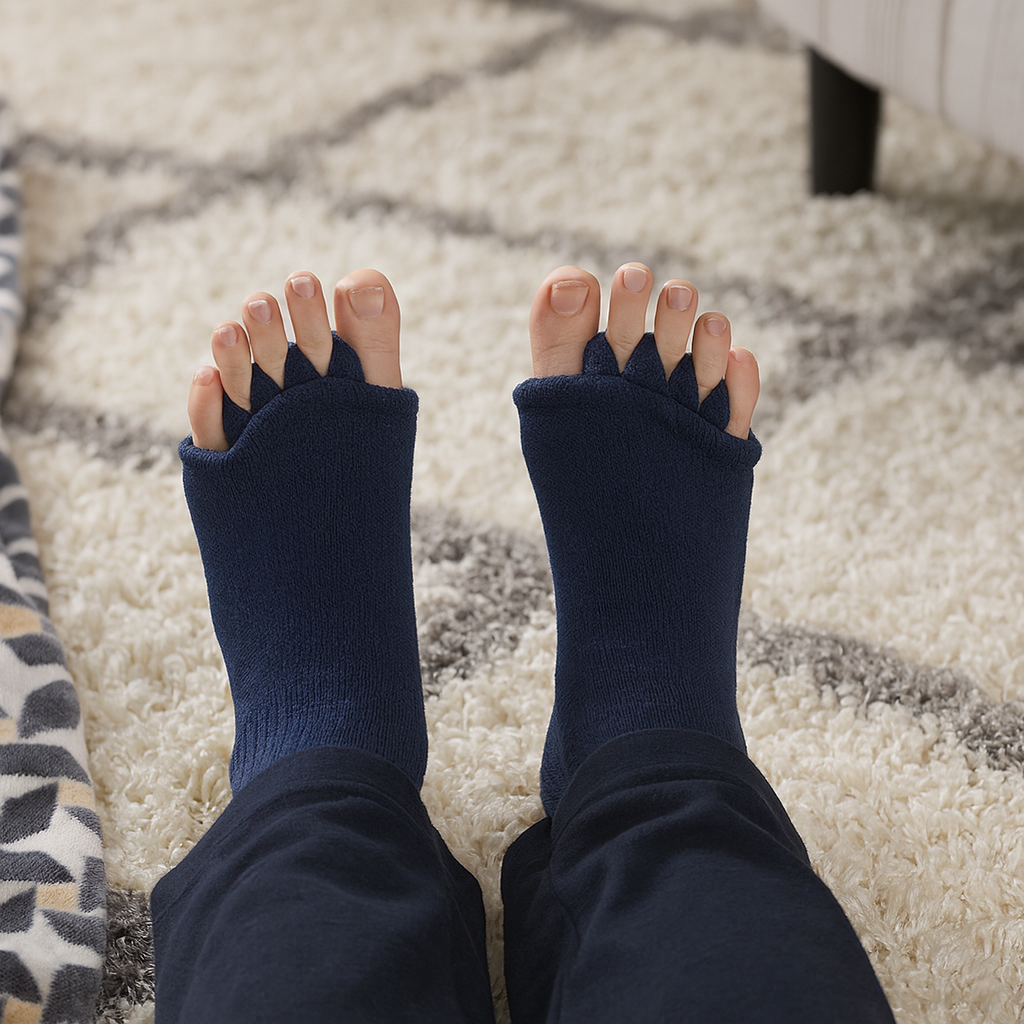 Våra tåstrumpor gör tvärtom. De separerar tårna försiktigt, förbättrar cirkulationen och hjälper fötterna tillbaka till sin naturliga position.